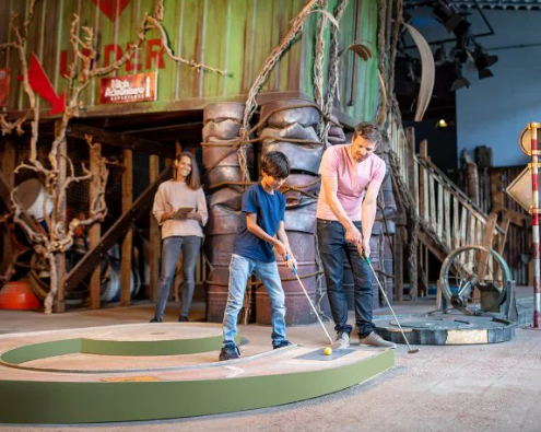 Maak gebruik van het Adventure golfparcours die een unieke ervaring biedt met special effects, of geniet buiten in het zonnetje tijdens het slaan van een balletje bij de Shark Island minigolf baan!